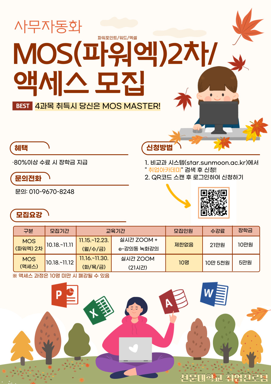 2학기 MOS(파워엑)2차 / 액세스 과정을 모집하오니 많은 관심과 참여바랍니다.