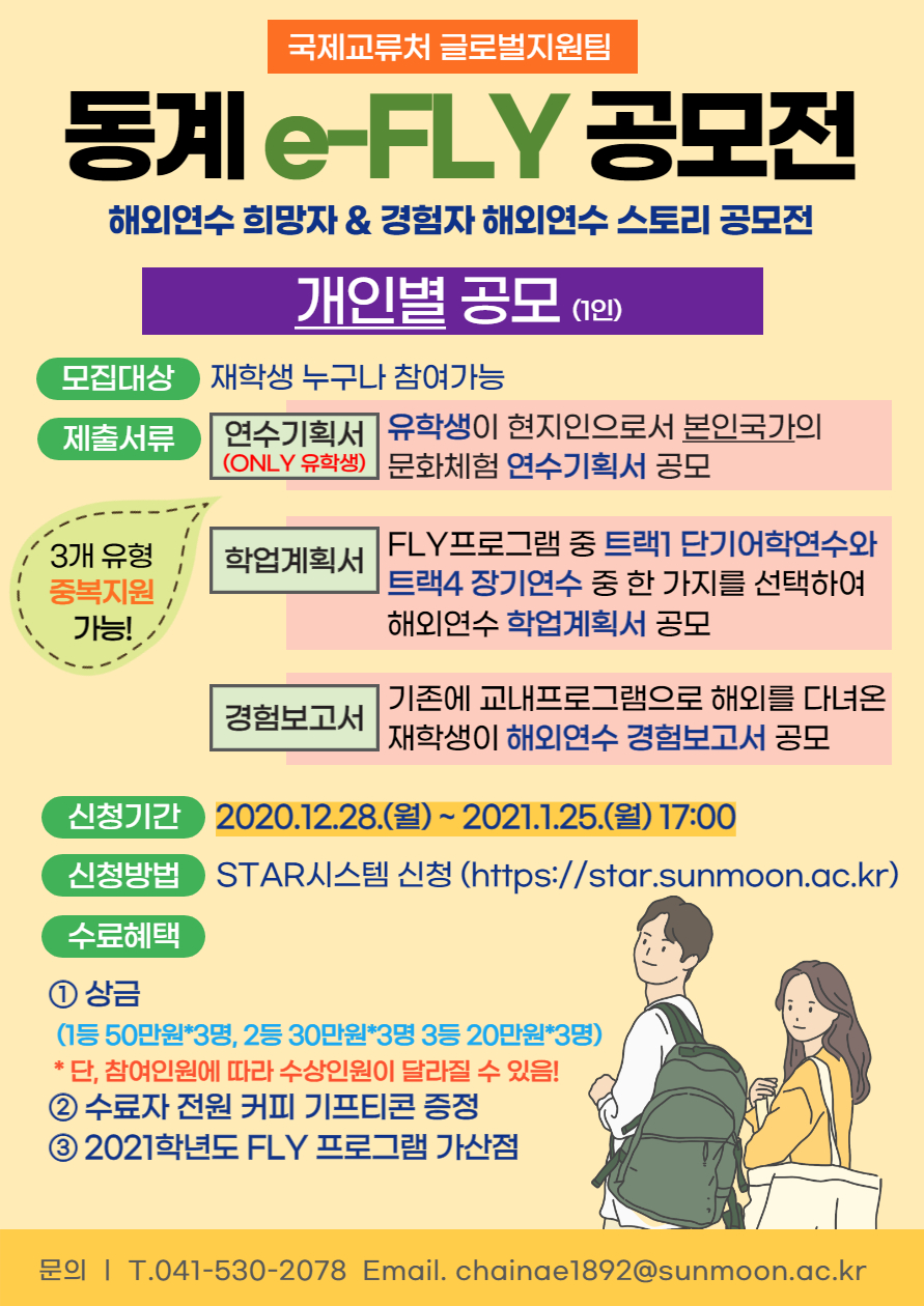 내년 해외연수 희망하는 재학생은 트랙별 해외연수 중 하나를 선택해 학업계획안 또는 학업기획서 공모!